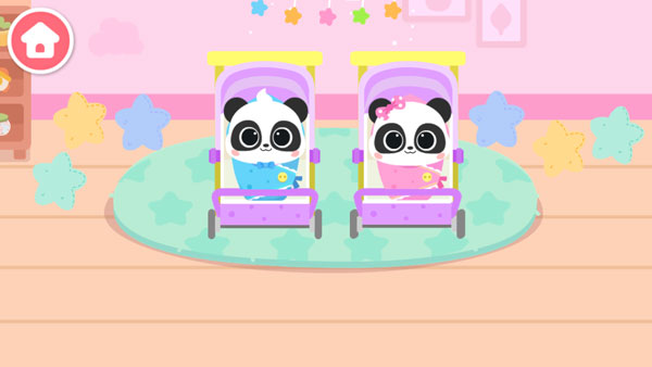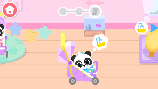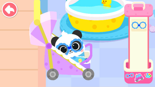 4、到达地点后按提示为熊猫宝宝做事,如洗澡,换尿布等;