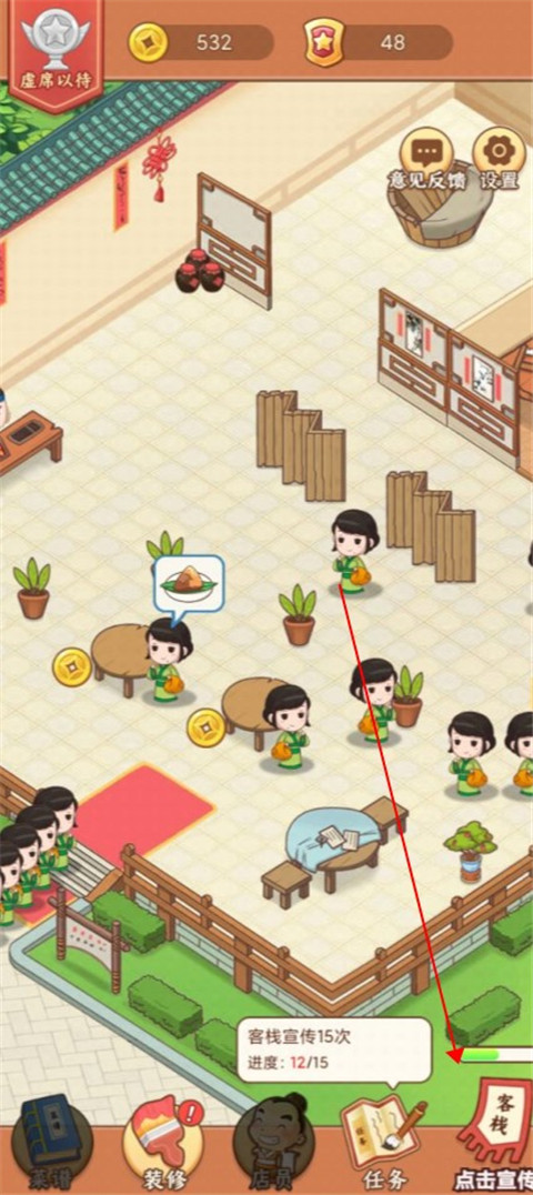 玩家在忙碌时可以暂时离开,客栈依然会正常运营,客人会自动入住消费,员工会持续工作,收益会在后台累积。上线后即可收获满满的金币和经验,轻松实现“躺赢”。