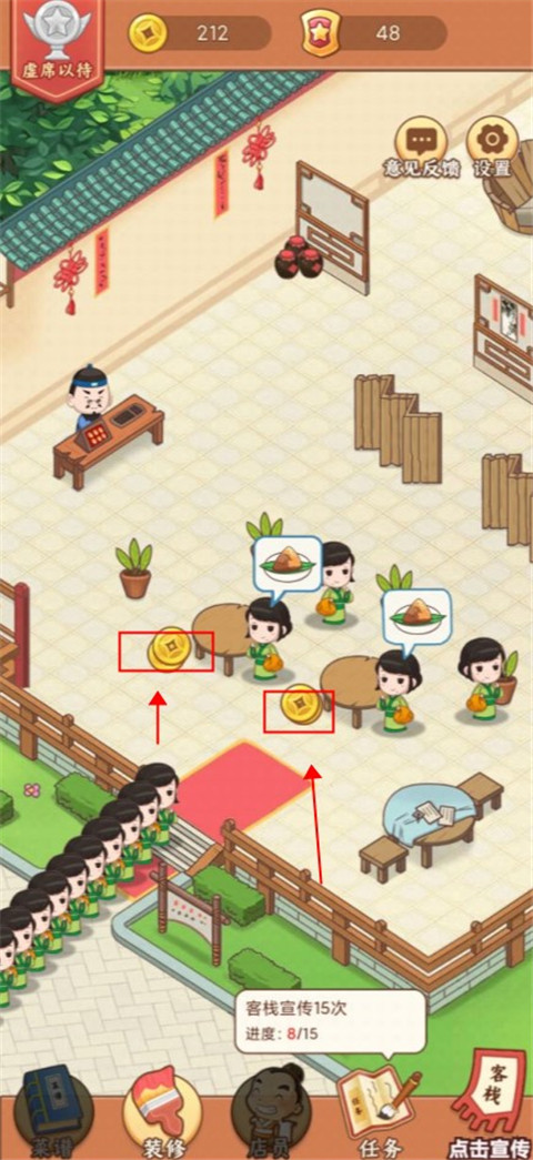 5、客人享用完后会将钱丢在地上,我们点击钱就可以将其收集起来