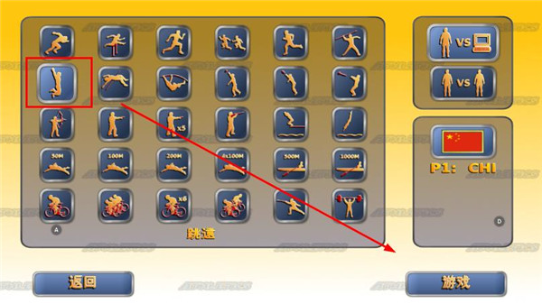 1、在主界面中点击体育竞赛,选择你所要参加的项目,这里选择的是跳远。