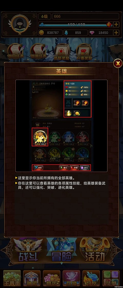 问答英雄的游戏世界分为:冒险、试炼、竞技、活动......