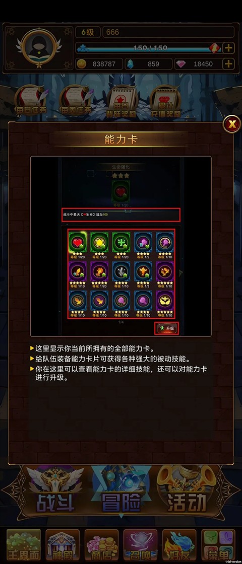 问答英雄的能力提升方式有:英雄、武具、能力卡、知识升级......