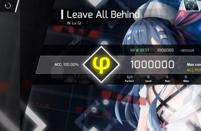 Perfect:音符正好着陆与判定线。判定时间为±80ms,在2.0.0版本新增的课题模式中判定时间为±40ms。