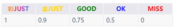 2、判定有:彩JUST、金JUST、GOOD、OK 和 MISS。