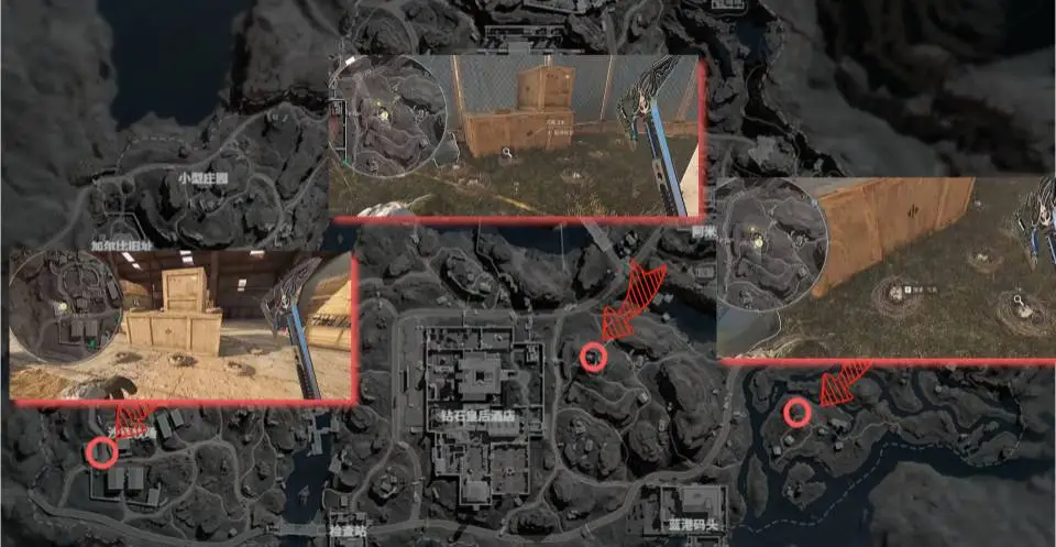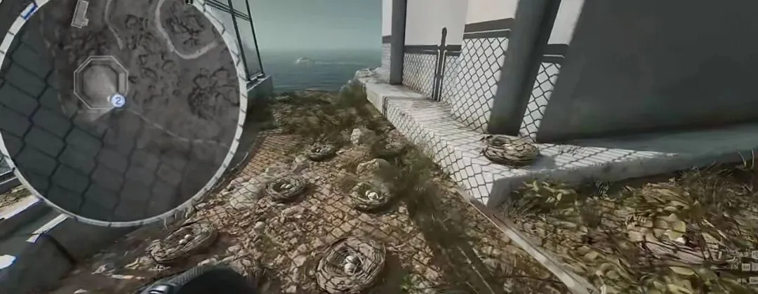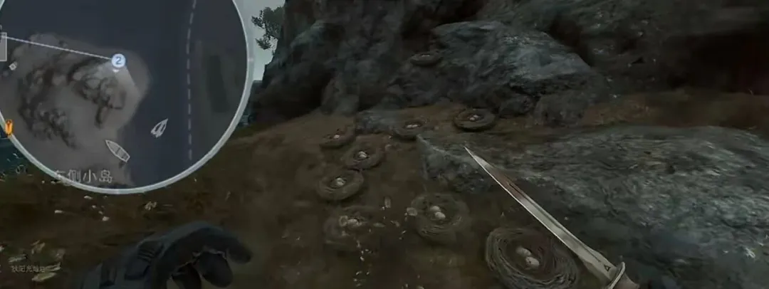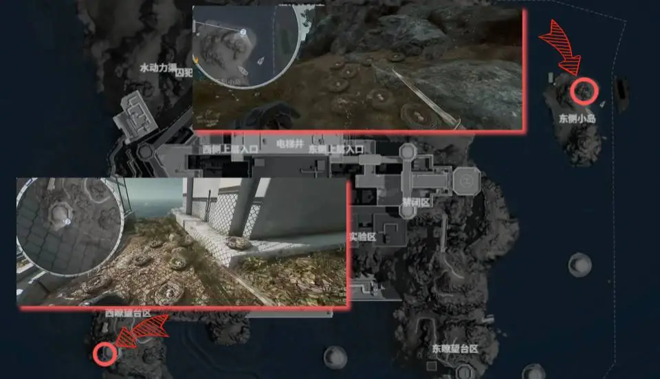 第二个点位在东侧小岛复活点的东边,往南可以看到小船的位置。
