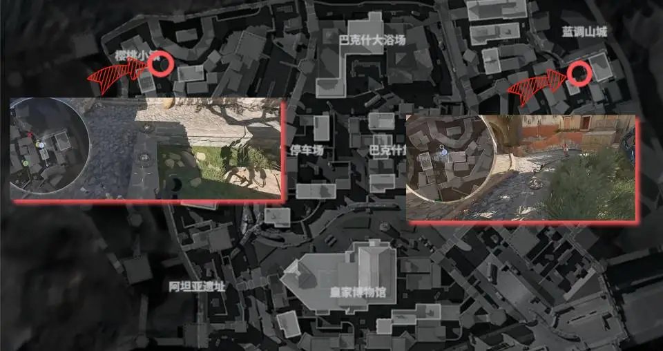 第二个点位在皇后酒店右侧,瞭望塔的下方。