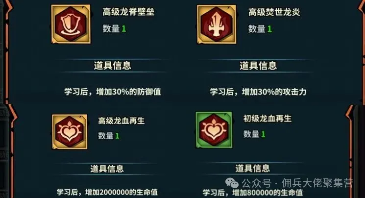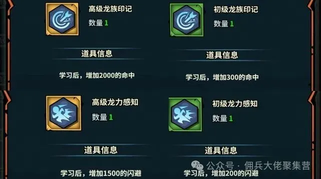 注:不同品阶的龙魂形成的护盾是一样的,所以个人认为应该优先给主力配齐龙魂,再追求高品级龙魂