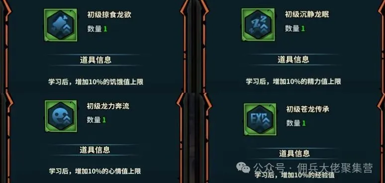 简而言之,用来开龙魂技能的格子!每名镇长都需要大量囤积这些垃圾技能,用来追求那渺茫的开格概率!