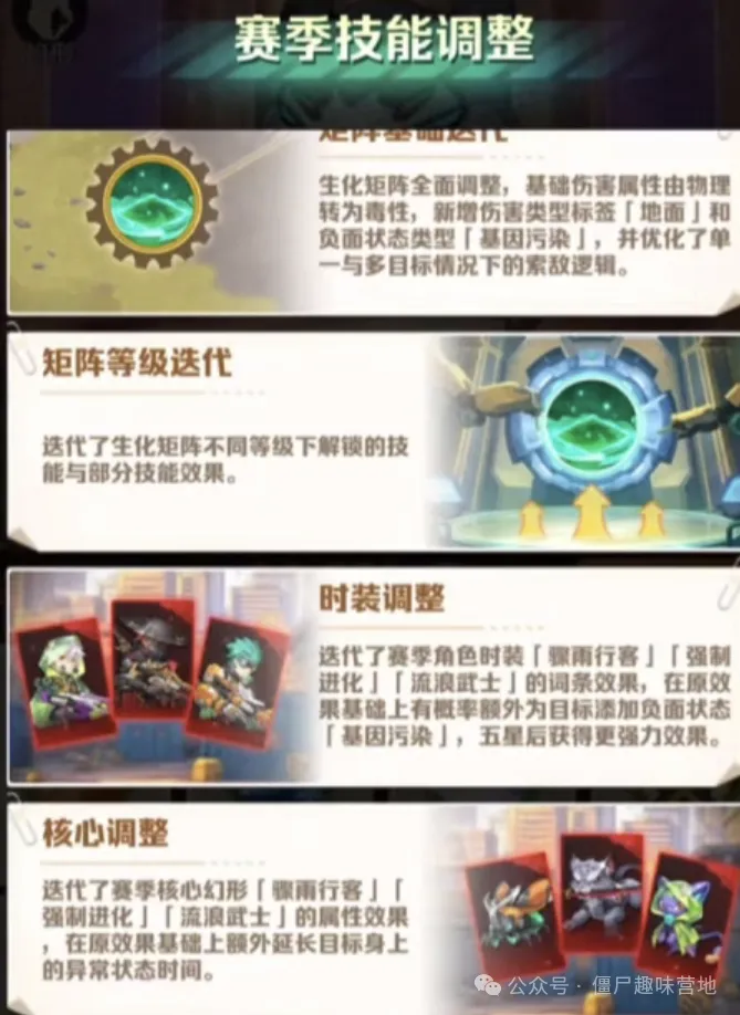 与冰龙百相比,毒百在本次赛季技能调整后可谓是“改头换面”。如今,毒百能用普通水洗练了,这大大降低了它的培养难度。同时,生化矩阵也进行了迭代升级,不同等级下解锁的技能更加丰富多样,使得毒百的整体强度得到了显著提升。