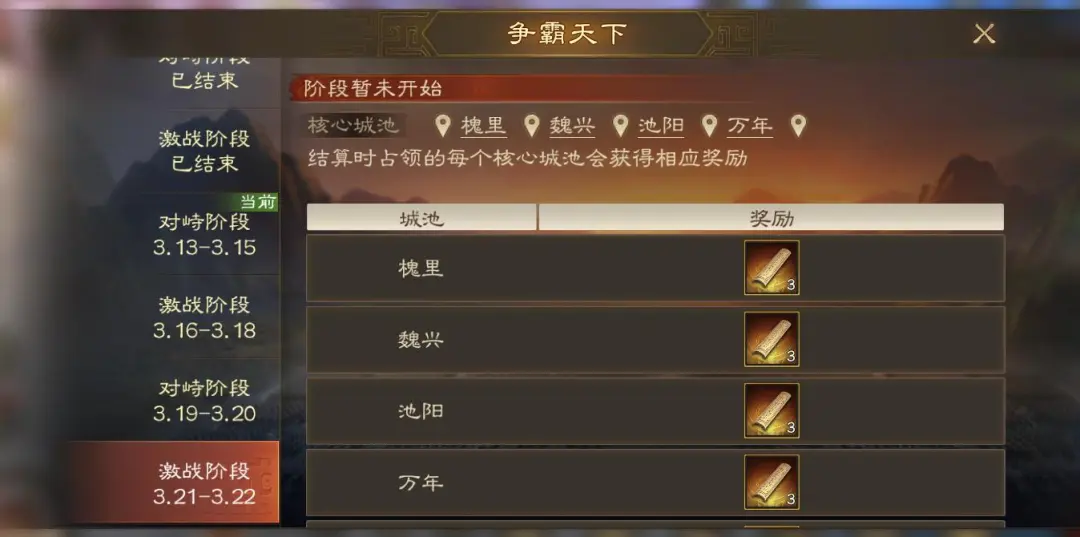 这一阶段是抢夺司隶的6个八级城阶段,另外之前京畿的7级城、8级城依然计算,这次激战阶段的奖励确定是按阵营计算,数量还是蛮多的,多抢几个城就有更多的名刺。