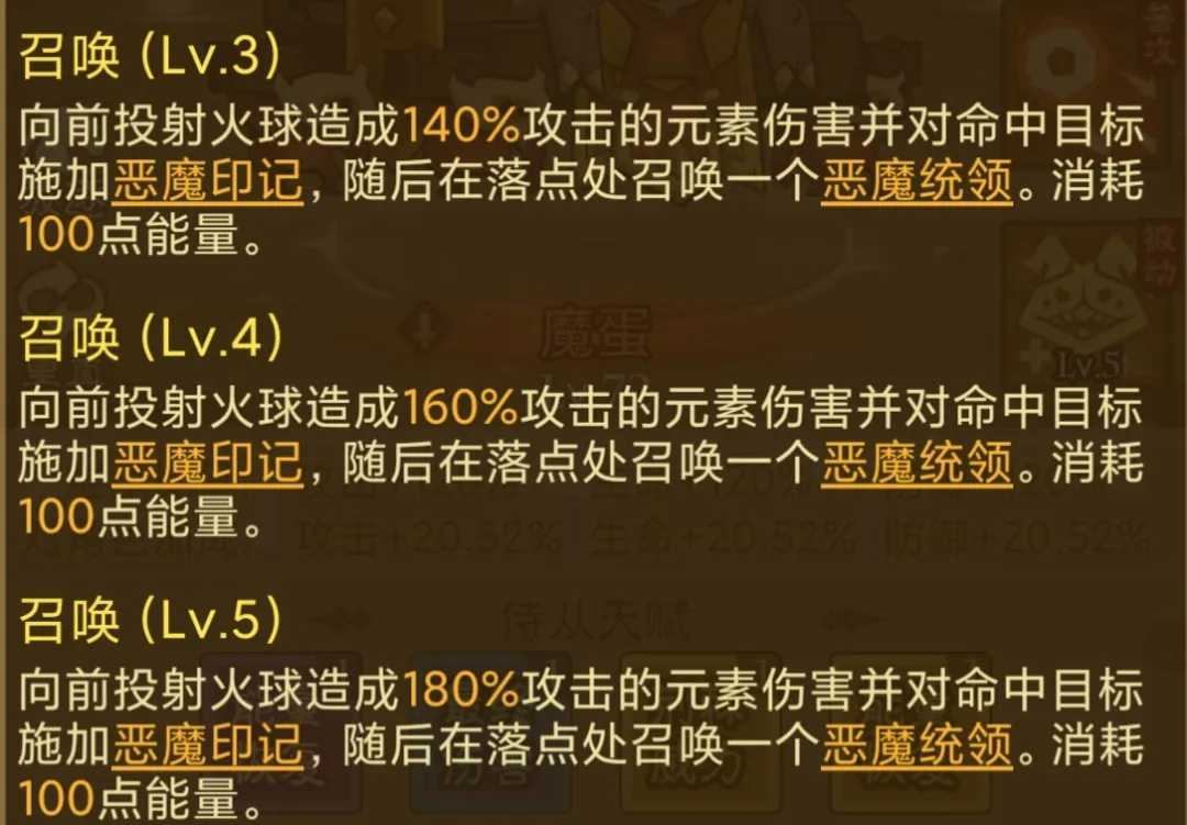 主动技能:召唤,最主要可以召唤一个恶魔统领