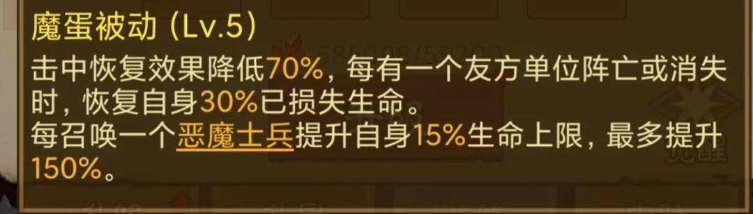 被动技能,小恶魔死亡时可以回血,而且每召唤一个小兵就增加15%血量