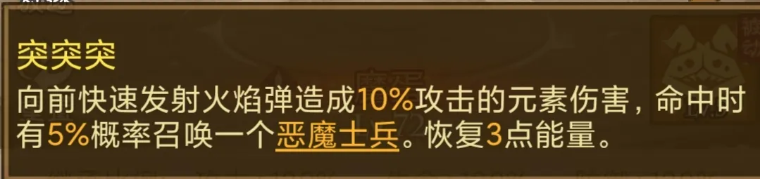 最主要可以召唤一个恶魔小兵,5%概率,应该可以受幸运影响的,如果幸运高的话不就可以重复一直召唤了??